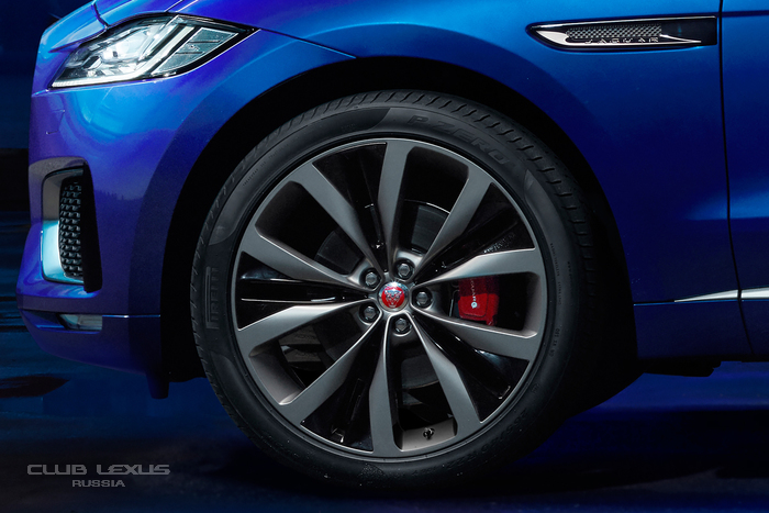 Дизайн пятиместного кроссовера выполнен в стиле концепт-кара C-X17. F-Pace получил светодиодные фары головного света, прямоугольную решетку радиатора, большие воздухозаборники и задний спойлер.