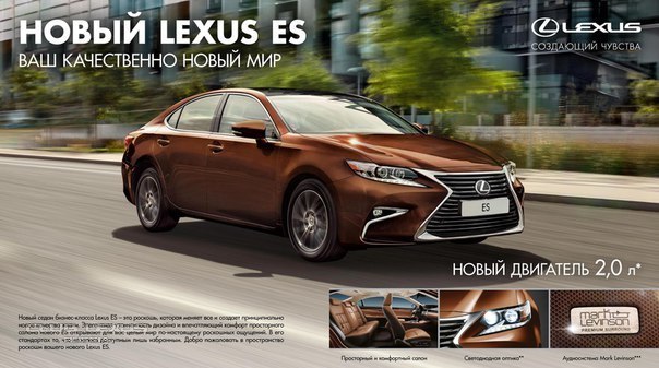 ES нового поколения – это качественно новый мир, приглашение войти в пространство роскоши. Просторный интерьер, высочайший уровень комфорта, великолепные материалы отделки в сочетании с легендарными качеством и надежностью делают ES одним из наиболее выгодных предложений в своем классе!