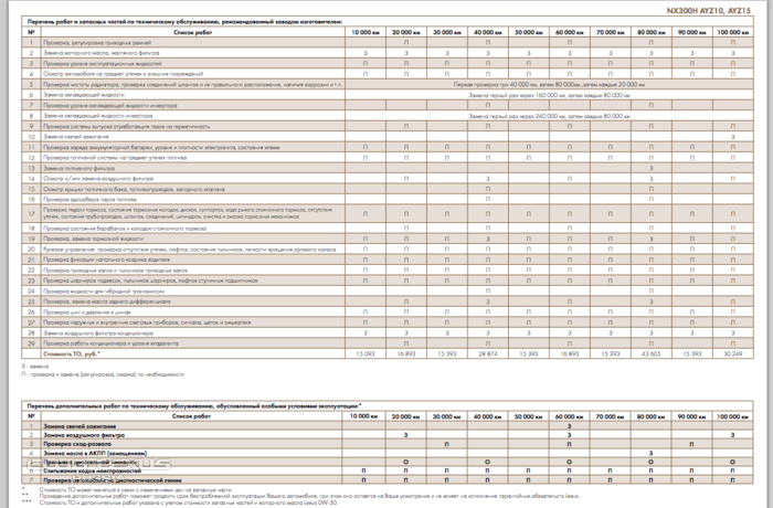 Стоимость работ (без учета клубных скидок) NX 200 – 5760 рублей, NX 200 AWD - 6400 рублей.