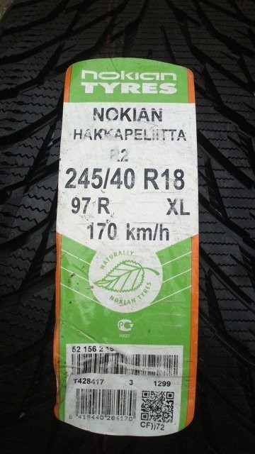 Nokian Hakkapeliitta R2 - в размере 245/40R18