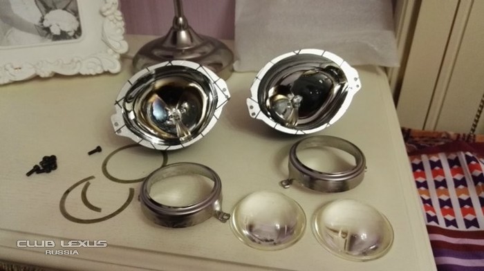 Снято с полностью исправных оригинальных фар американца 2004 года при ретрофите биксеноновых линз Hella.