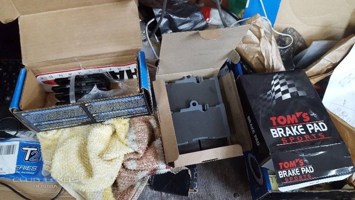 Купил в круг тормозные диски DBA T2, колодки перед TOMS, зад HAWK HPS и так же ремкомплекты для передних и задних суппортов, болты и верхние направляющие для заднего суппорта (нижних не брал так как не нашел их, да и выкрутить их оказалось большой проблемой так и не решенной)