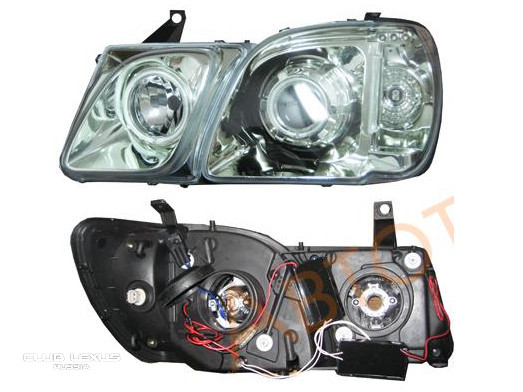 Продам передние фары Lexus LX470 (98-07), линзовые хромированные, со светящимися ободками, голубое стекло, комплект 2 шт. Фары как на фото