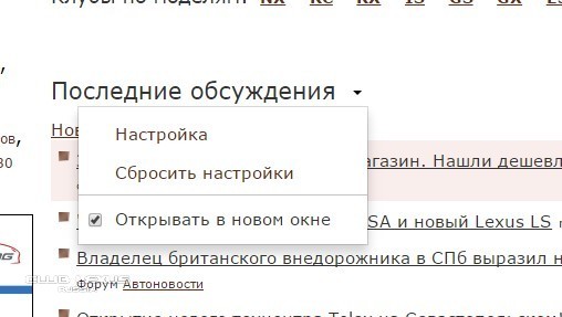 открывается менюшка на стрелочке справа от "Последние обсуждения"