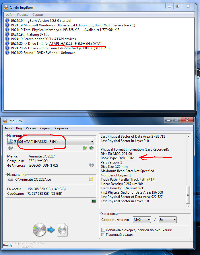 2) не вытаскивая записанный экземпляр, переключить ImgBurn в режим создания образа диска и посмотреть, что он думает по поводу полученной копии: