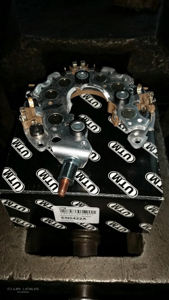 на днях произошла история как у многих, пропала зарядка, как следствие высадился аккумулятор, пришло снимать гену самому, т.к. на аккуме ехать не вариант было. На снятие потратил мин 40-50, вытащил гену без снятия компрессора кондиционера. После вскрытия выяснили что диодный мост под замену, обгонная муфта в норме, щеток больше половины. Диодный мост поставили вот такой UTM EN0422A фото ниже