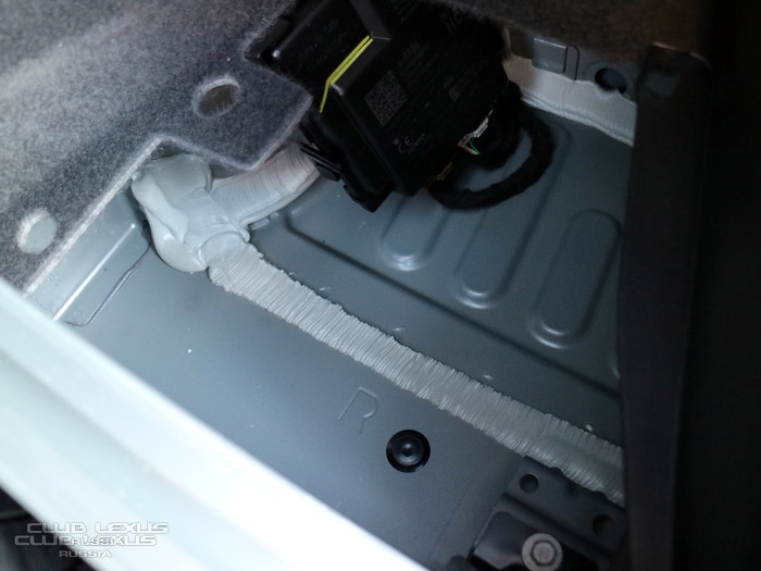 Под запаской заботливо уложен слой толстой, шумопоглощающей синтетики.
