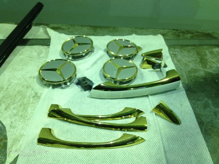 - Гальваническое золочение элементов интерьера и экстерьера (шильды, значки, решетки радиатора, колпачки на ступицах, ручки дверей, молдинги;