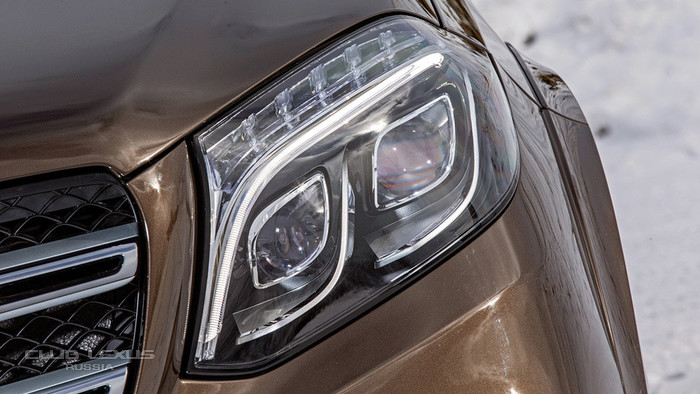 В качестве опции на GLS можно заказать полностью светодиодные фары с адаптивным дальним светом. Они умеют динамически менять форму и размер светового пучка, а также поворачиваться, чтобы осветить поворот. В зависимости от количества автомобилей впереди дальний свет либо выключается полностью, либо система изолирует соседей по дороге с помощью механических шторок. В большинстве случаев система успевает срабатывать даже если встречный транспорт внезапно показывается из-за поворота.