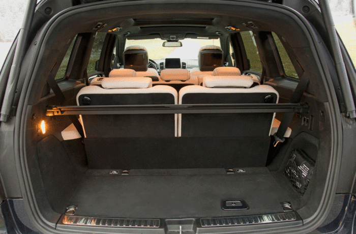 Топ-вариант GLS 500 с турбомотором V8 4.7 (455 л.с., 700 Н•м) можно оснастить спортивными креслами, 21-дюймовыми AMG-колёсами и внедорожным пакетом, позволяющим увеличить дорожный просвет с 216 мм до 306.