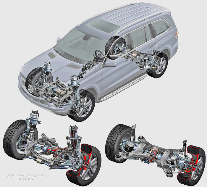 С новым передним бампером GLS на 10 мм длиннее, чем GL. Углы въезда остались прежними от 31 градуса до 36 (в верхнем положении кузова). Лучший результат среди конкурентов у Лексуса LX: 2527 градусов.