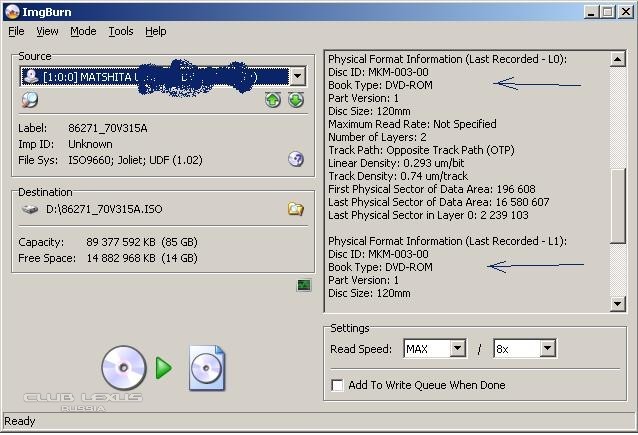 2) не вытаскивая записанный экземпляр, переключить ImgBurn в режим создания образа диска и посмотреть, что он думает по поводу полученной копии: