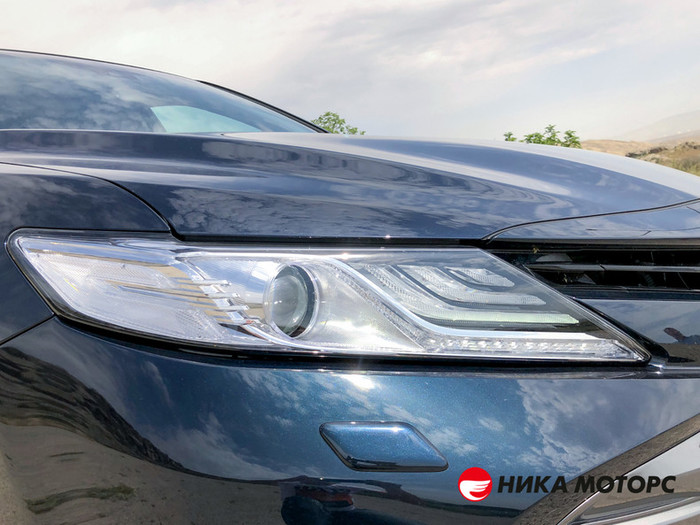 Светодиодная оптика теперь на всех комплектациях, даже самой скромной. Но чтобы отличить "бедную" версию от "богатой", можно присмотреться к сигналам поворота. На дорогих Camry поворотники, встроенные в оптику, тоже светодиодные, а вот на скромных - там моргает обычная лампочка.