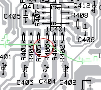 9. Подпаиваемся: R406-правый канал, R405-левый канал.