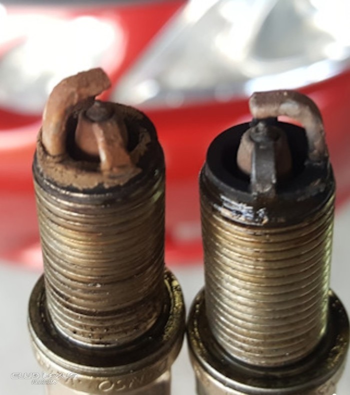ЛЕВАЯ свеча в топку, она уже своё отслужила, ПРАВАЯ СВЕЧА нужен анализ работы Цилиндра, свеча МЕНЯЕТСЯ на рабочий цилиндр, делается забег и оцениваем состояние фонда обмена (свечами), свечи должны выгореть, если все так же с проблемным цилиндром, или свечой которая ушла на обмен