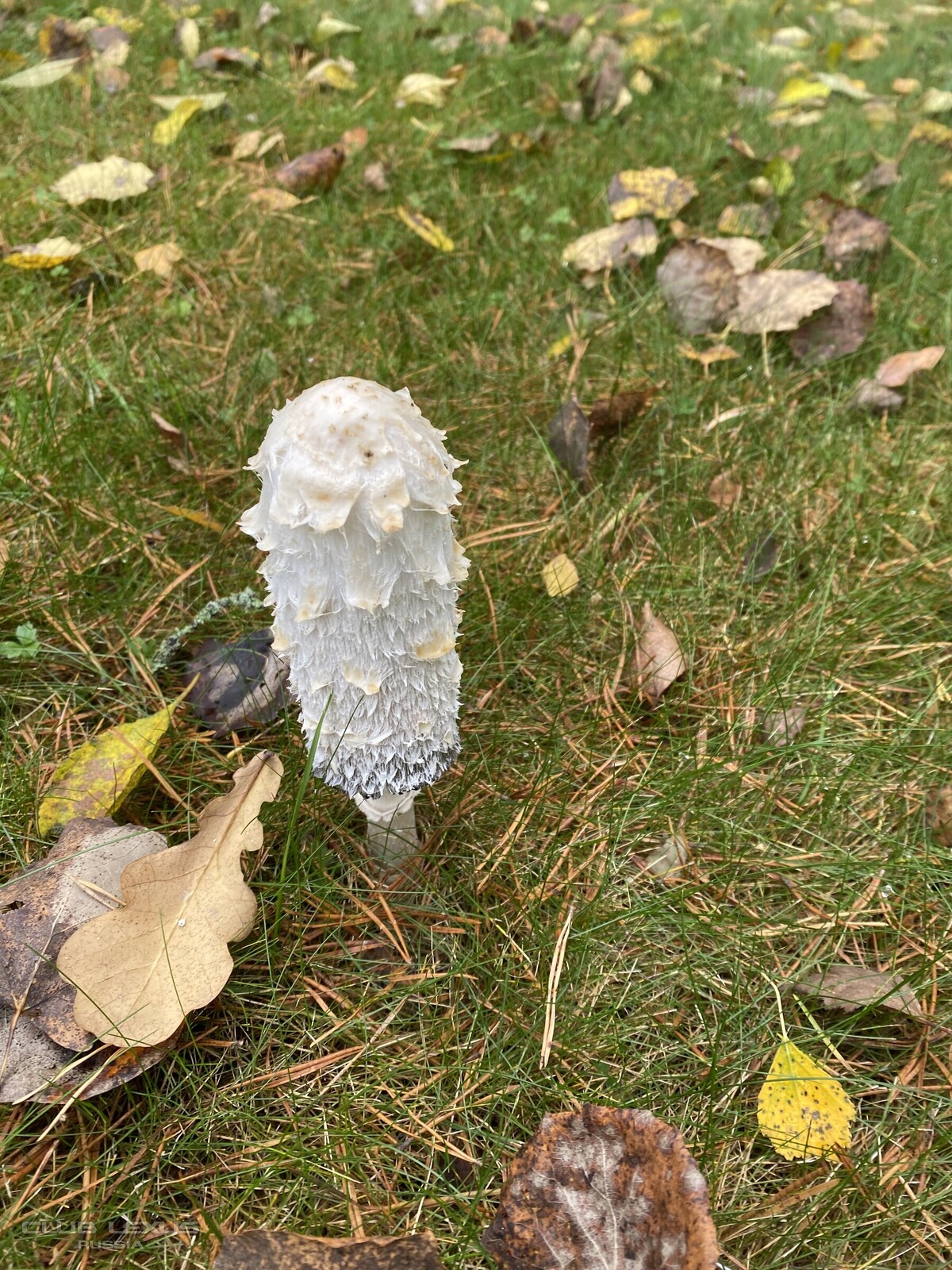 На изображении представлен гриб Навозник белый (Coprinus comatus).