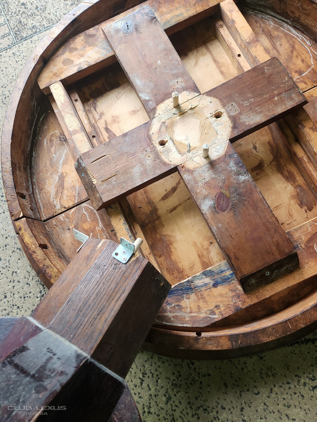 Приспичило моему благоверному круглый стол на кухню. Ну я же не могу найти простецкий стол из ДСП, мне ж надо шоб деревянный, да с историей )))