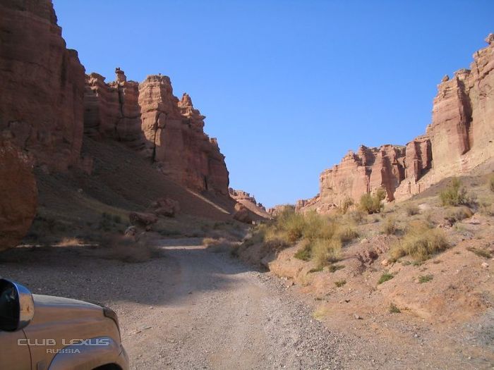 Перед въездом в ущелье с левой стороны есть съезд с дороги, обозначенный самодельным указателем с надписью «Чарынский каньон – Долина замков». Поворачиваем налево 194-й км – пост егеря. Через 400 м – развилка. Далее – «по азимуту», на ваш выбор.