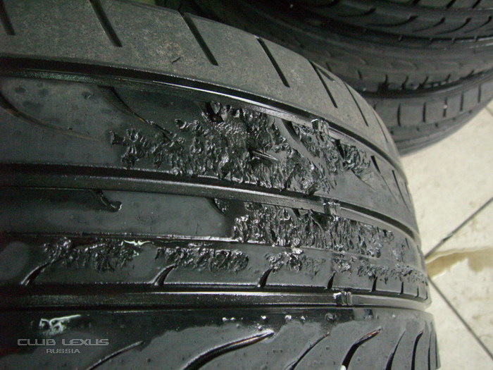 Кстати говря да, у меня на Эрыксе на котором максимум что можно позволить это по влетаь в повороты на скорости и что то типа покрутиться, хотя как на IS или GS мне не удовалась, так вот у меня тоже стоит с завода резина Dunlop SpSport 270 225\60\R17, такую же новую поставил на лето , месяц покатавшись обнаружил, что , резина в центре балона как бы кусками отваливаеться , как будто кто то на ней крутился и оно как бы потерто а потом кусочек отвалился , вот такую картину я обнаружил на 3 колесах.... благо ездит можно что там не так уж много рытвинок.