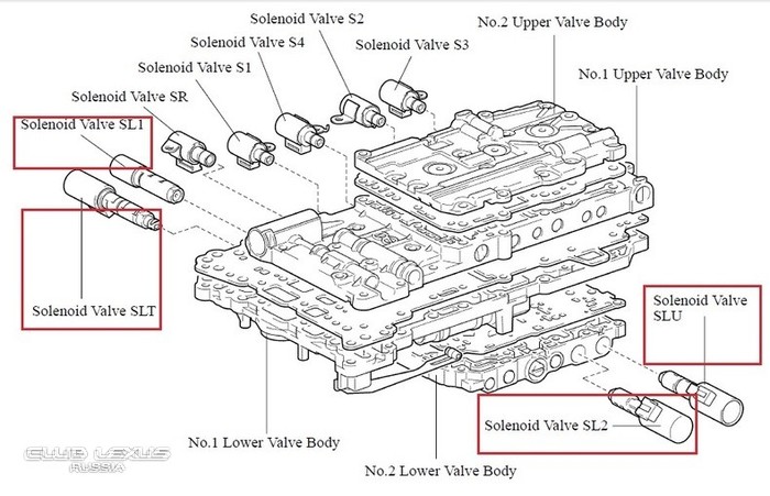 За время что накатал я уже дважды менял АТФ в коробке, поэтому особого осадка от фрикционов не наблюдалось, что уже порадовало - фрикционы скорее живы. Соленоид блокировки ГТ - на схеме SLU, был заранее заказан в клубном магазине и с клубной скидкой обошелся в 6500р.
