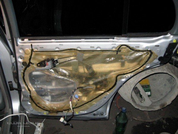 Затем заклеиваете назад пленку, хотя ее лучше заменить обесшумливающим материалом STP и проклеить им вместо нее т.к. некоторые двери могут начать шуметь или уже шумят поэлителеном. В моем городе не было такого материала поэтому я и не проклеил.