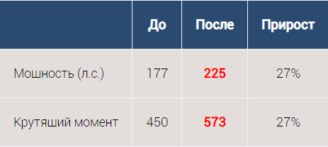 Результат для двигателя с базовой мощностью 249 л.с (второй рестайл):