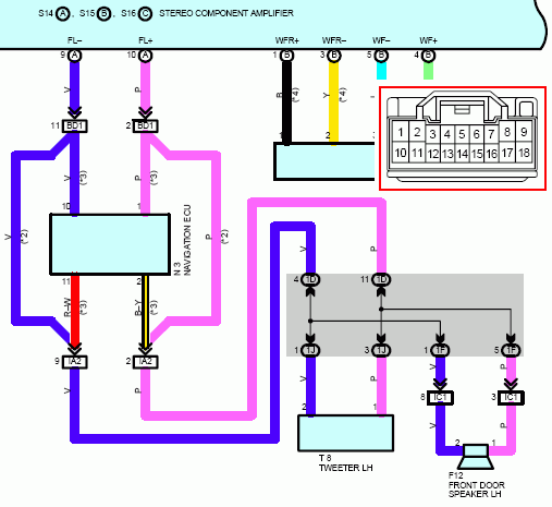 Замыкаем контакты попарно 1-2 и 10-11 на разъеме, который был воткнут в блок навигации (на картинке обведен красной рамкой).