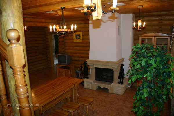 На втором этаже - зал с камином и уютными креслами-качалками, инфракрасная сауна и римская баня.