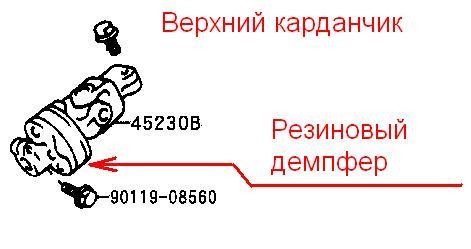 Резиновый демпфер стоит на верхнем карданчике. По конструкции люфтить не должен...
