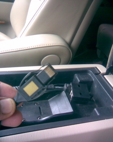 За правой задней спинкой на боковине прикручены 2 блока.В один входит и выходит антена.Есть такой же разъем как и в подлокотнике.Так же маленькие типа реле коробочки, тоже 2 штуки. никаких признаков вставления симок нет!