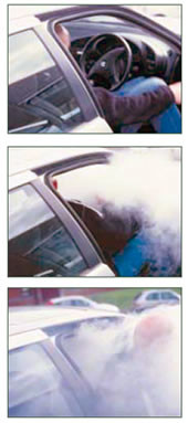 Логичным развитием стало появление автомобильных генераторов дыма. Задымление таким устройством происходит относительно медленно (что позволяет в случае срабатывания на ходу безопасно остановиться), но верно - видимость в салоне резко падает. Поскольку жидкость для дыма представляет из себя водный раствор глицерина - никаких пятен или запаха в салоне она не оставляет и является абсолютно безопасной для людей.