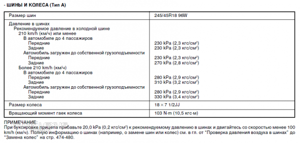 Спасибо! Все нашел! стандартные колеса 16" рекомендуют 2.4 атм качать, я свои 17" 2.5 накачал... Думаю так справедливо))