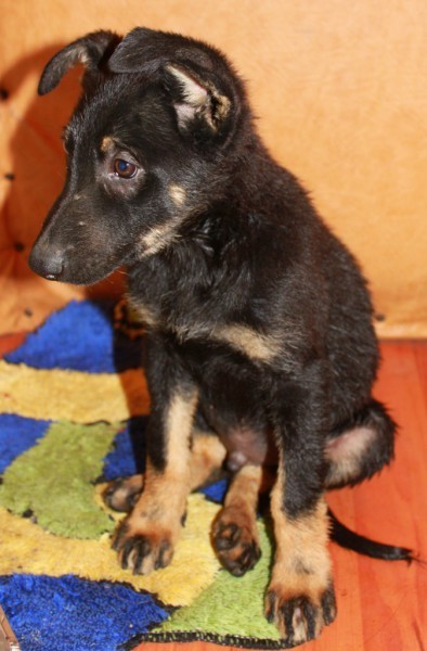 Кому собака? Собралась уезжать, дошла до магазина, там щенок у забора. Продавщицы сказали 2 мужика утром привязали и ушли. Продавщицы отвязали, но он за весь день с места не встал, очень скучает и обижен, ждет хозяина Такая тоска в глазах. Ему месяца 2-3. Кобель. Очень умный, начала гладить, он сел и дал лапу. Оставить на улице не смогла, т.к. район у нас такой, то над кошками издеваются, то голубей убивают. Всё что смогла сделать - принести домой и помыть. Постелила у входа, сказала "Место". Сидит не встает. По виду не болезненый, просто напуган. Но в клинику могу свозить. Оставить не могу у себя. У меня 3 кошки, одна не здорова сейчас, да и родители нас с ним отправят спать в машине. До завтра могу подержать.