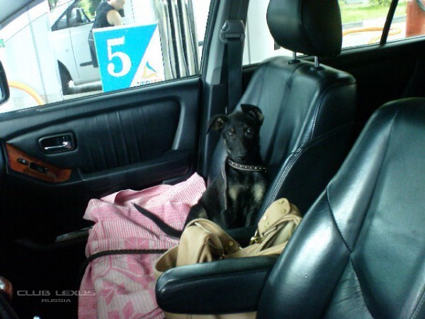 В машине вел себя отлично! Он воспитанный! Пока рассчитывалась на ресепшне, пришли хозяева с боксером, боксер начал на нас лаять, а мой в ответ ему, т.е. не прятался за мамку, а защищал!