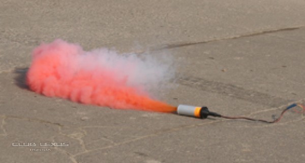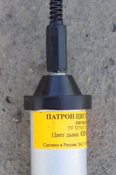3) Сверху в патрон вставляется штепсель ( или как там он называется?), от него идут два провода (+) и (-). При подаче тока происходит воспламенение содержимого патрона и выброс некоторого количества дыма.