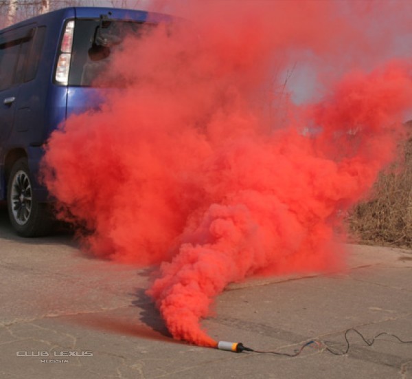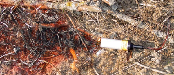 5) К сожалению выброс дыма очень маленький, его тут же сдуло ветром и мы не успели сфотографировать. Зато потом в течении 15 секунд из патрона под напором рвалось пламя, спалившее всю траву вокруг. После этого патрон в течении 5 минут нельзя было взять в руки т.к. он был раскален.
