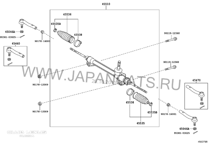 45470-49025 Наконечник рулевой левый и 45460-49055 правый. Все есть в каталоге РХ 350