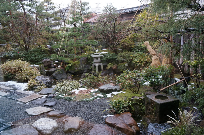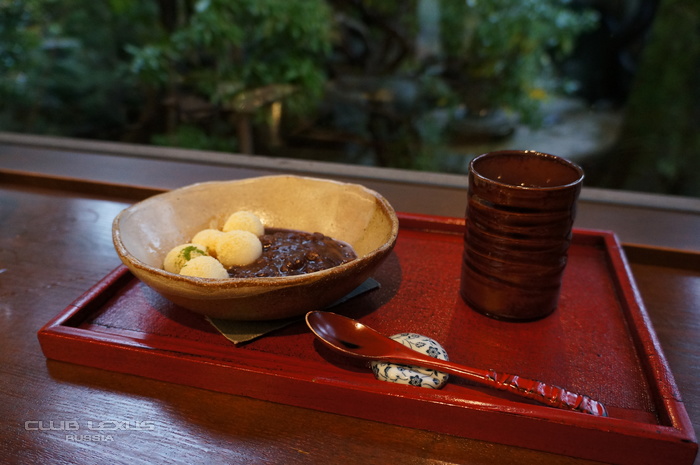 Далее мы посетили небольшое кафе, которое предлагает нечто большее, чем только отменную кухню. Оно расположен в милом здании в традиционном японском стиле, и вид на сад, открывающийся перед вами, когда вы сидите перед окном, примечателен не менее, чем сама еда. Хозяин кафе говорит: «Мы хотим помочь вам отдохнуть так в Канадзаве, как если бы вы были дома, и при этом насладиться угощениями, которые у себя в России вы никогда не попробуете».