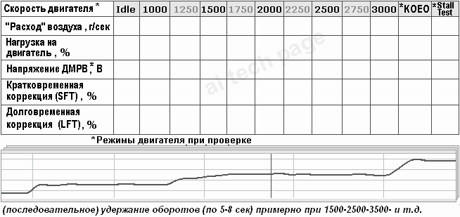 1. Можете ли Вы записать лог работы прогретого двс в таком режиме: холостой-1000-1500-2000-2500-3000-3500-4000. На каждом значении оборотов задерживайтесь по 10 сек. Обороты старайтесь поднимать плавно, чтобы график был нарастающий без провалов. После этого сделайте "прогазовку" до отсечки. Перечень записываемых параметров желательно выбрать типа AF/O2 Banked (обязательное присутствие всех параметров по кислородникам и топливным коррекциям.