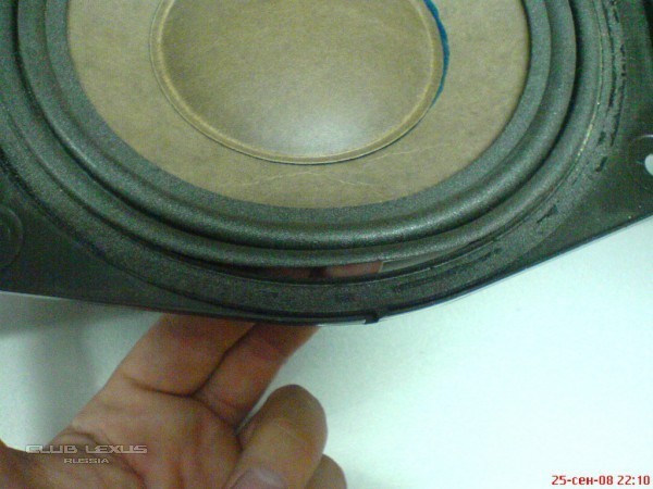 , кстати, замазывал по всей окружности и приклеил к черному пластмассовому кольцу, которое крепится сверху, звук нормальный.