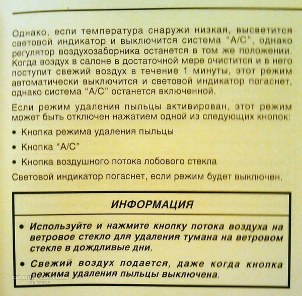 fantuck писал(а): поясните пжлст по поводу голандского мануала, у меня другой в отличии от картинки, машина дилерская, тоже написано про удаление пыльцы... на всех машинах стоит ионизатор? на дорестайле?