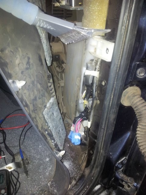 Если будете снимать обшивку, там один винтик посредине прикручен к полу под ковром, ковер откручивать необязательно, я так подлез...
