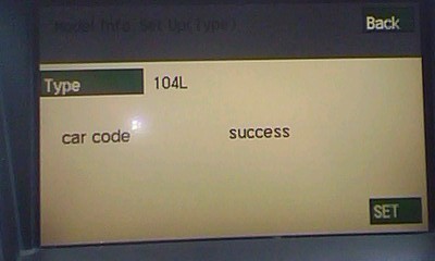 Type и SET активны на тачскрине, а 104L и есть код автомобиля, но соответственно он сейчас у меня не правильный