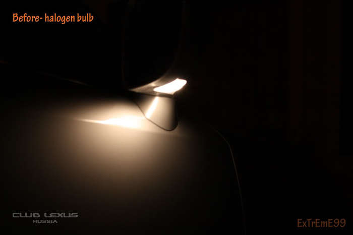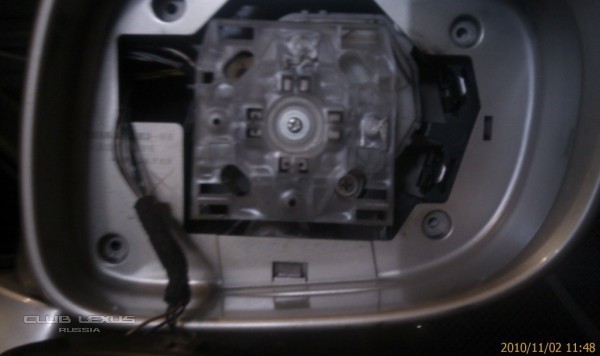 1. Чтобы вытащить плафон с лампочкой не надо злостно извращаться с отверткой, как это делали в мануале на клуб-лексус.ком. Зеркало берется за нижнюю часть и тянется на себя (перпендикулярно плоскости зеркала) до отщелкивания пластмассовых креплений. Дальше "отгибается" вверх почти на 90 градусов и затем опять тянется на себя, но уже в плоскости зеркала. После этого открывается замечательный вид на 4 шурупа, откручивая которые освобождается пластмассовый кожух, за который и держится плафон.