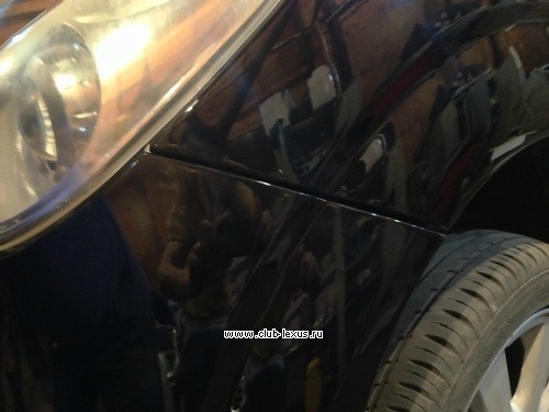 Все стало на свои места когда машину разобрали. Удар пришелся в задний бампер и панель, которая утянула крыло вниз, так образовался большой зазор с фарой и появилась складка на арке.