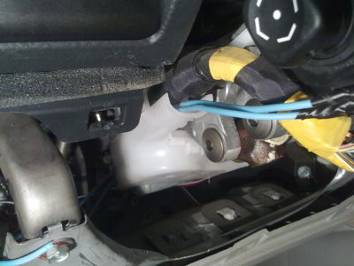 4) снимаем пластиковое оперение с рулевой колонки: 3 шурупа (один снизу, два прячутся за рулем, чтобы открутить попеременно поворачиваем руль на 45 гр.)