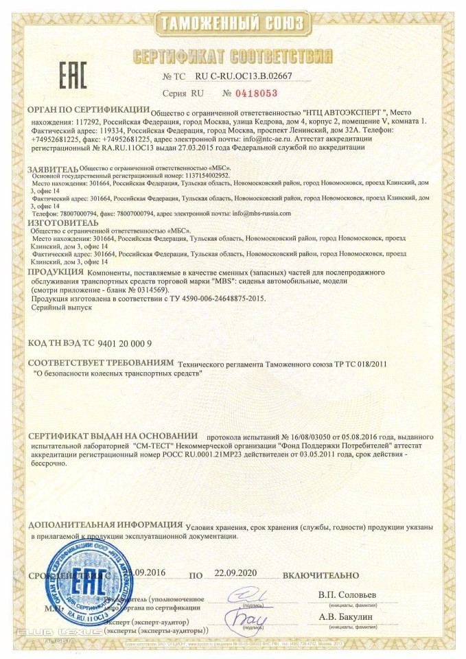В завершении этого поста хотим сказать, что новое сиденье MBS имеет не только сертификат безопасности колесных транспортных средств, но также прошло сертификацию в компании AGR. Мы выполнили все требования этой организации (как и Рекаро и ряд других мировых производителей) для того, чтобы автомобильное сиденье считалось действительно комфортным и ортопедически правильным.