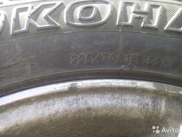 Резина Yokohama Geolandar 225 70 R16,два баллона новых практически,третье с одной стороны сильно подъедено,у четвертого износ примерно 50%.