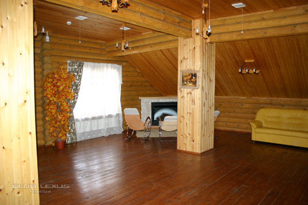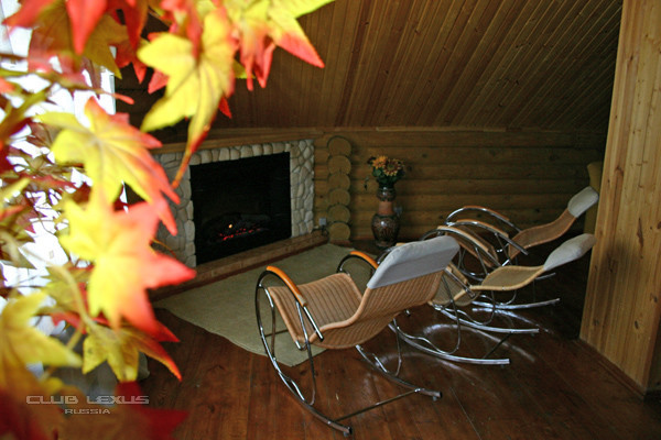 На втором этаже - зал с камином и уютными креслами-качалками, инфракрасная сауна и римская баня.