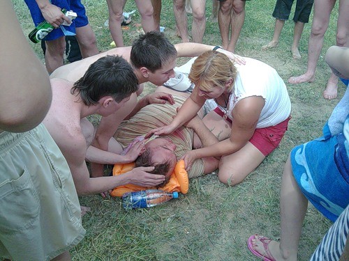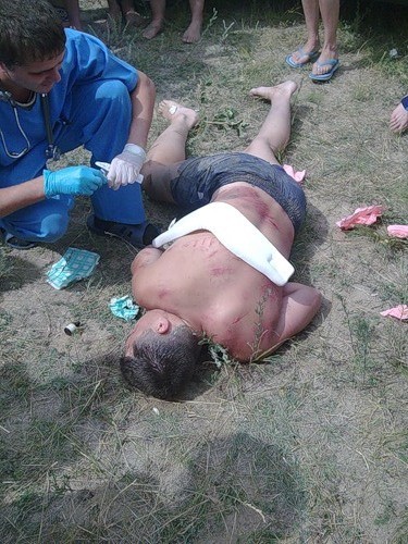 Народ благополучно отдыхал, празднуя день Молодежи. И тут на пляж вылетел Лексус, попутно сбив Ниву и три заградительный столба. Выехав на пляж, он сбил двух женщин, ребенка и его отца. Ребенок отделался царапинами, у отца сломан позвоночник, грудная клетка, ноги, у одной женщины открытый перелом двух ног. Водитель в жопу пьяный, как оказалось он перед этим еще успел на трассе сбить Газель и МТ-9. Его естественно впоймали и начистили лицо, хотя он кричал что ему все по..й, т.к. он сын прокурора.